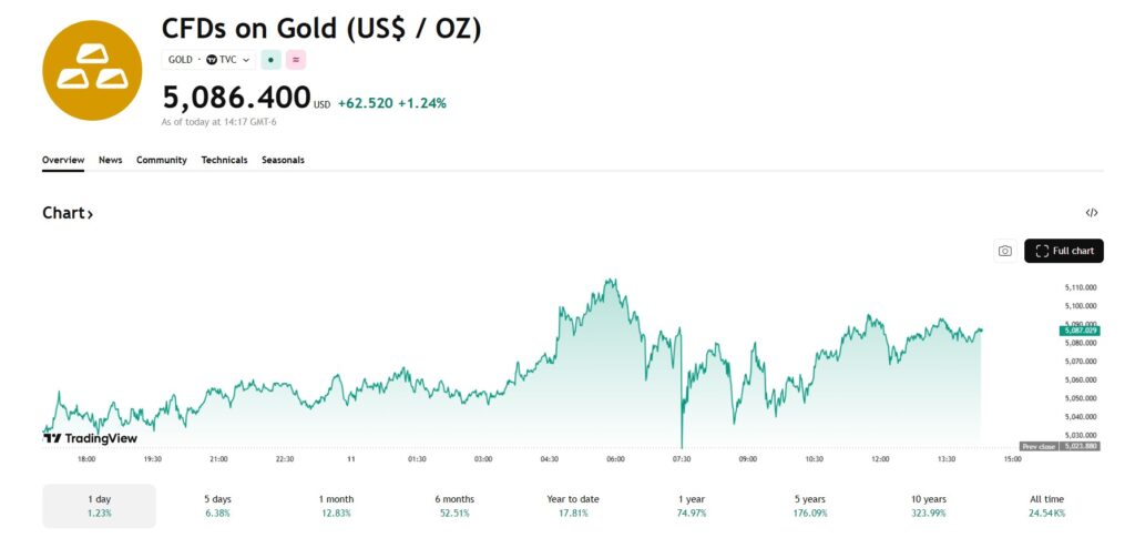 고용 지표도 못 막은 ‘금빛 질주’… 온스당 5100달러 육박
