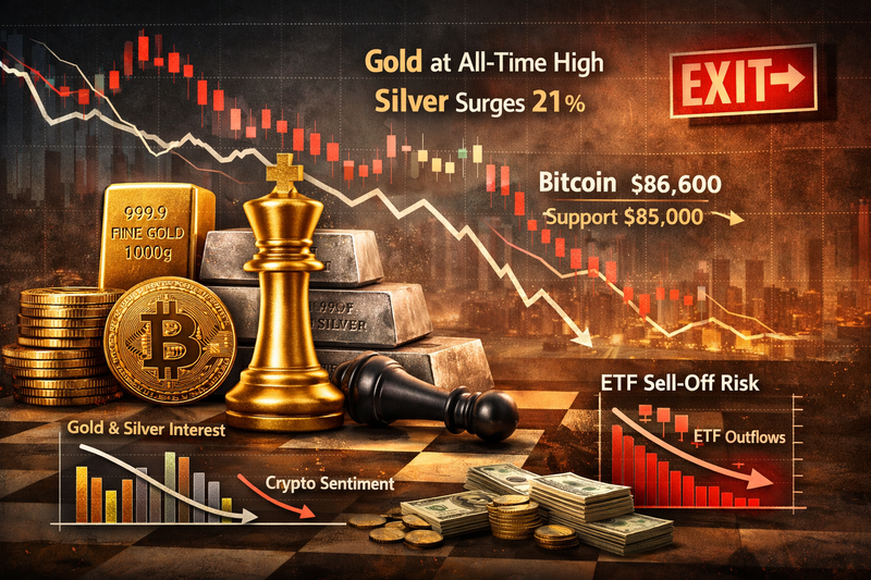 암호화폐 시장이 주식과 귀금속 랠리 속에서 갈피를 잡지 못하며 ‘움직일수록 불리해지는’ 궁지에 몰렸다는 진단이 나온다. 금과 은으로 자금이 이동하는 흐름이 뚜렷해지는 가운데, 비트코인을 비롯한 주요 코인들은 하락을 피하고는 있지만 반등의 동력도 확보하지 못한 채 긴장 국면에 들어섰다.