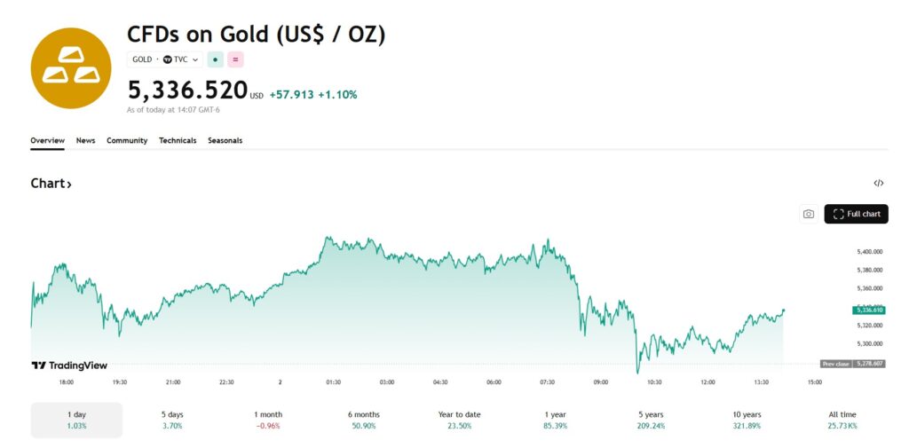 [멕시코=심영재 특파원] 국제 금값이 중동 전면전 우려 속에 장중 5400달러를 돌파하며 사상 최고치 재시험에 나섰다. 다만 미국 증시가 급반등하고 국채금리가 상승하면서 안전자산 선호가 일부 완화돼 상승폭은 장중 고점 대비 축소됐다. 2일(현지시각) 오전 거래에서 금 현물 가격은 한때 온스당 5419달러를 상회하며 강하게 치솟았다. 장중 기준 4주 만의 최고치이자 사상 최고가권 재진입 시도다. 이후 미국 증시가 낙폭을 […]