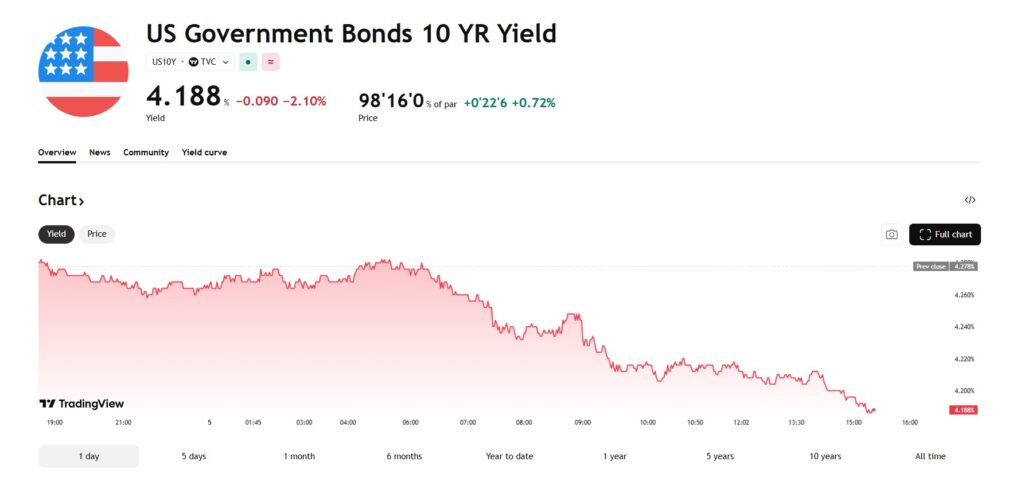 [멕시코=심영재 특파원] 미국 국채 수익률이 5일(현지시각) 일제히 하락했다. 고용시장에 대한 우려가 커지면서 연준의 통화정책 전환 기대가 부각됐고, 이에 따라 투자자들의 국채 매수세가 유입되며 수익률은 큰 폭으로 떨어졌다. 대표 지표인 10년물 국채금리는 전일 대비 9bp 하락한 4.188%로 마감했다. 이는 하루 낙폭 기준으로 지난해 10월 이후 가장 큰 하락 폭이며, 금리 하락과 함께 채권 가격은 0.72% 상승해 […]