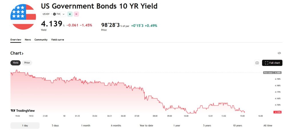 [뉴욕채권] 미 10년물 4.13% 하락… ‘소비 쇼크’에 금리 인하 기대 재점화