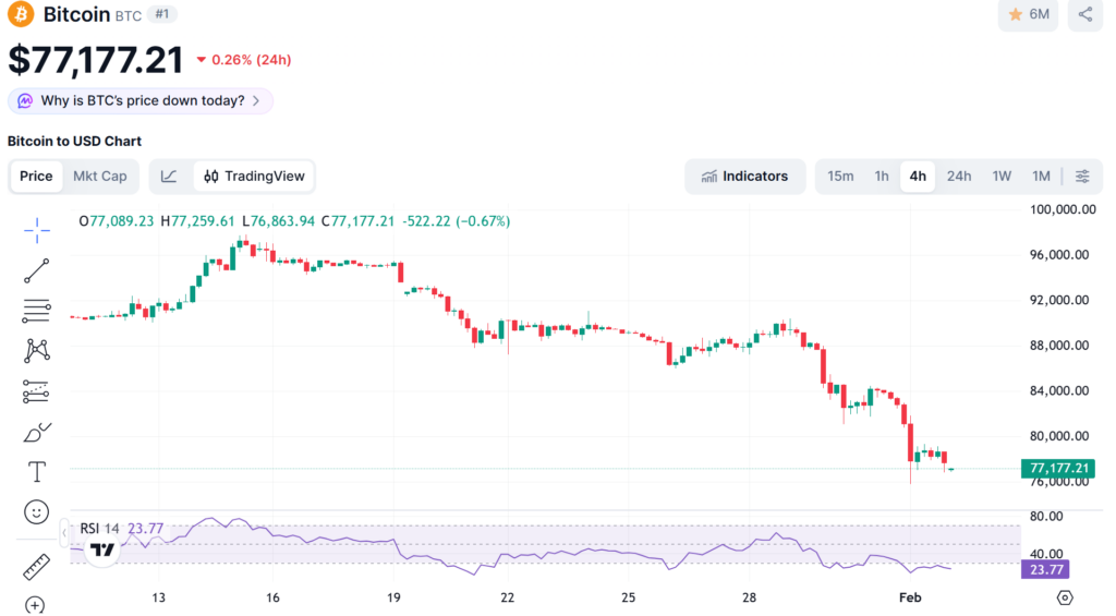[블록미디어 명정선 기자] 비트코인이 주말 사이 급락하며 뉴욕 디지털자산(가상자산) 시장 전반에 다시 한 번 경계 심리가 확산되고 있다. 단기 반등 기대를 지탱하던 수급 동력이 약화된 가운데 파생상품 시장에서는 대규모 청산이 이어지며 조정 국면이 길어질 수 있다는 분석이 나온다. 1일 (현지시각) 코인마켓캡 기준 글로벌 디지털자산 시가총액은 2조8200억달러로 전일 대비 5.42% 감소했다. 시장 전반의 약세 속에 비트코인 […]