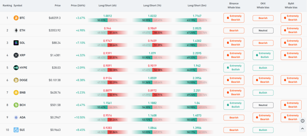 [롱/숏] 극단적 공포 속에도 DOGE·BNB 초단기 롱 비중 70% 육박… 단타 열기 ‘후끈’