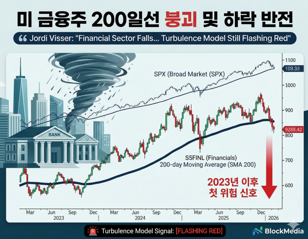 [블록미디어 최창환 기자]미국 증시에서 금융 섹터의 뚜렷한 약세가 포착되며, 전체 시장에 더 큰 변동성이 닥칠 수 있다는 월가 전문가의 강력한 경고가 나왔다. 월가의 금융전략가 조르디 비서(Jordi Visser)는 5일(현지시간) X(옛 트위터) 계정을 통해 블룸버그 터미널의 S&P 500 금융 섹터 지수(S5FINL) 차트를 공유하며, 금융주와 S&P 500(SPX) 지수 간의 디커플링(탈동조화) 현상이 급격한 변동성을 낳을 것이라고 전망했다. 금융주 200일선 […]