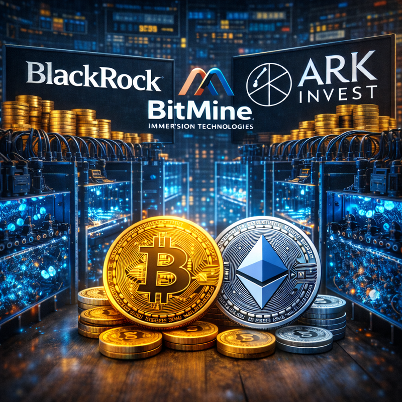 ![]() ▲ 블랙록(BlackRock), 아크 인베스트(Ark Invest), 비트마인(BitMine), 비트코인(BTC), 이더리움(ETH)/챗GPT 생성 이미지 |