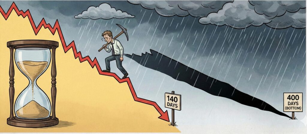 비트코인 조정장, 1년 더 가나… “최소 400일 찍어야 바닥인데 이제 140일”
