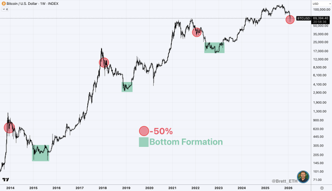 [블록미디어 안드레아 윤 에디터] 비트코인 약세장 이후 반등은 급격한 V자 회복이 아니라 장기간의 바닥 다지기 과정을 거쳐왔다는 분석이 나왔다. 과거 사례를 보면 상당 기간 횡보한 뒤에야 본격적인 상승 추세가 시작됐다는 설명이다. 디지털자산 시장 분석가 브렛은 9일(현지시각) 엑스를 통해 비트코인 약세장 이후 가격 흐름에 대한 자신의 견해를 밝혔다. 그는 “역사적으로 비트코인은 베어마켓 이후 V자 반등을 보인 […]