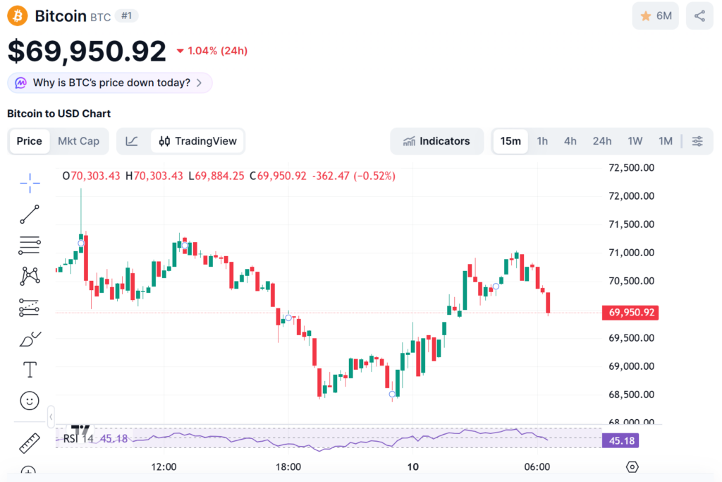 [속보] 비트코인 7만달러 아래로