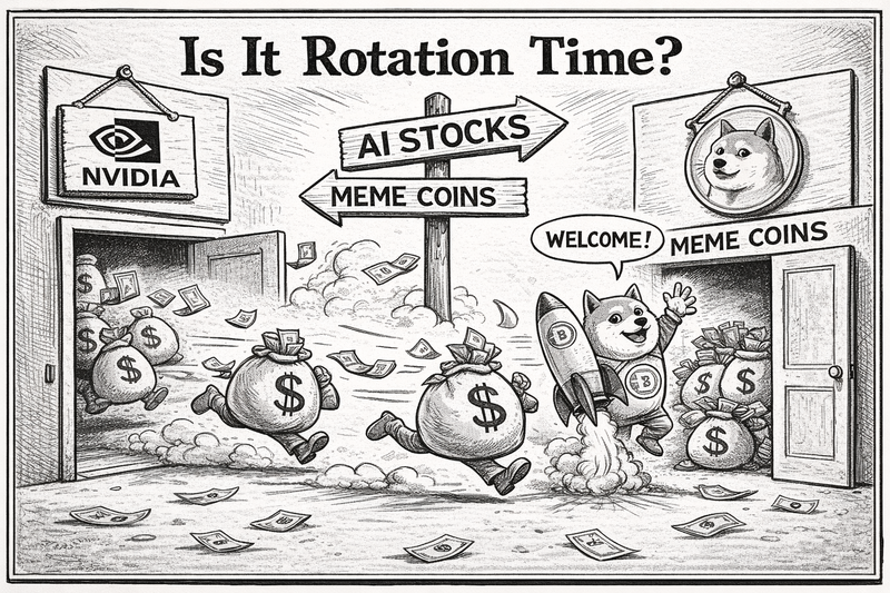 인공지능(AI) 대장주와 대표 밈 코인 사이의 이례적인 상대가치 지표가 다시 바닥 구간에 진입하면서, 주식에서 암호화폐로의 자금 이동 가능성을 둘러싼 논쟁이 시장에서 고개를 들고 있다.