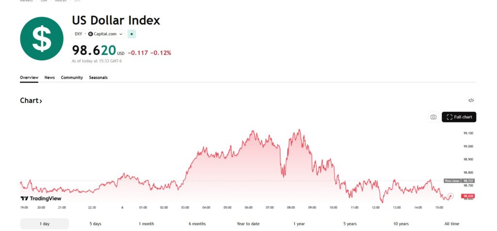 [멕시코=심영재 특파원] 미국 달러가 예상보다 부진한 고용지표 영향으로 약세 압력을 받았다. 다만 글로벌 금융시장 변동성과 안전자산 선호가 동시에 나타나면서 달러 낙폭은 제한되는 모습이다. 6일(현지시각) 뉴욕 외환시장에서 달러 인덱스(DXY)는 98.62 수준에서 거래되며 전일 대비 약 0.12% 하락했다. 장중 달러지수는 한때 99선 부근까지 상승한 뒤 하락 전환하며 변동성 있는 흐름을 보였다. 달러 약세의 가장 큰 배경은 이날 […]