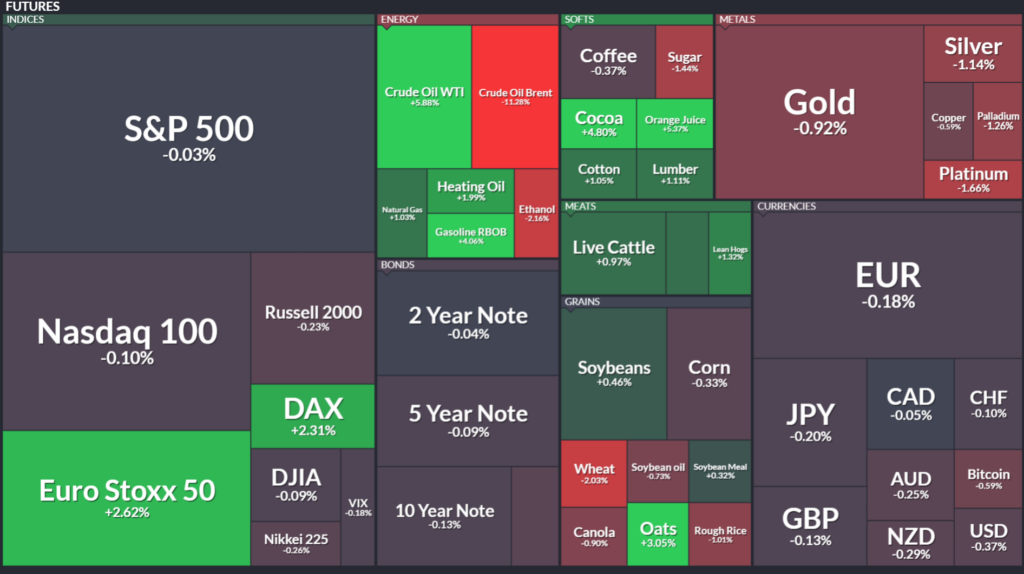 [블록미디어 명정선 기자] 11일(한국시각) 오전 8시 기준 글로벌 선물시장에서는 에너지 상품이 다시 상승세로 전환하며 시장의 중심 흐름을 형성하고 있다. 중동 지정학적 리스크를 둘러싼 뉴스가 이어지는 가운데 유가는 급락 이후 반등 흐름을 보였고, 금속 시장에서는 금과 은이 하락세를 나타냈다. 미국 주가지수 선물은 대체로 보합권에서 움직이며 방향성을 탐색하는 모습이다. 에너지 시장 반등…WTI 5%대 상승 파이낸셜 비주얼라이제이션에 따르면 […]