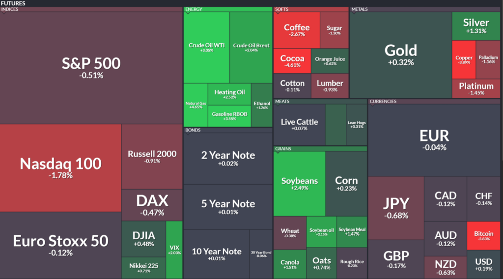 [이 시각 글로벌 선물] 유가 3% 급등·금 5000달러 회복…곡물 강세 속 美증시는 기술주 부담