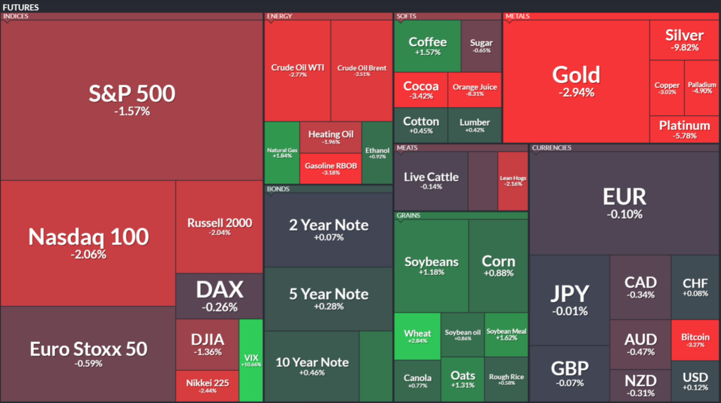 [이 시각 글로벌 선물] VIX 10%↑· 나스닥 2%↓ 은 9.8% 급락…위험회피 확산