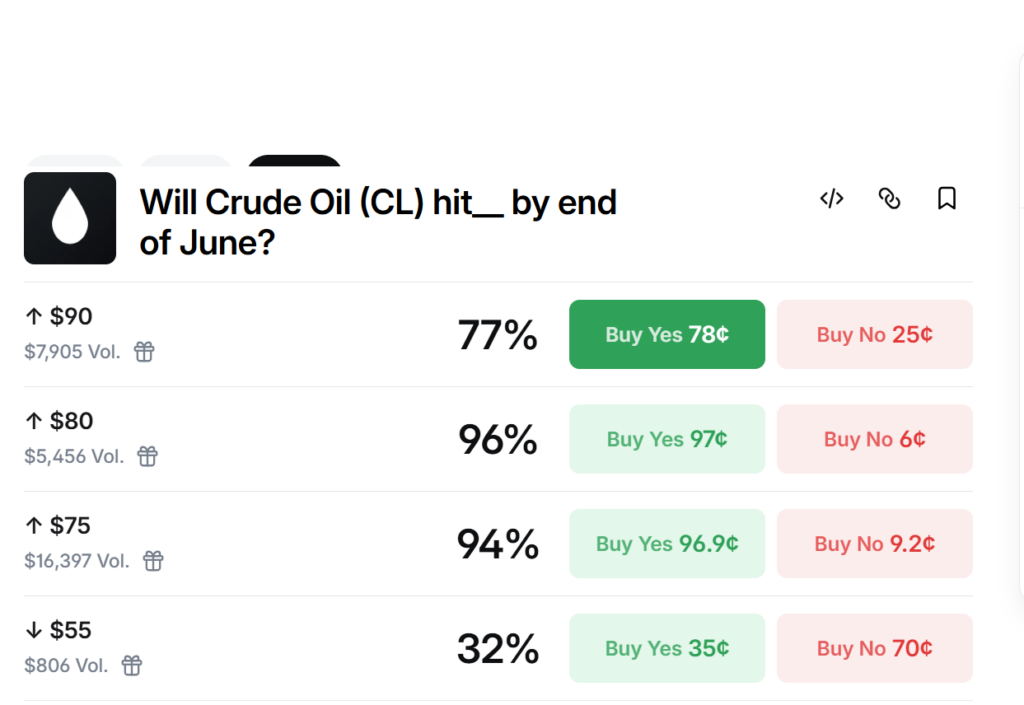 중동 긴장 격화에 유가 사흘간 15% 급등…폴리마켓 “90달러도 77%”
