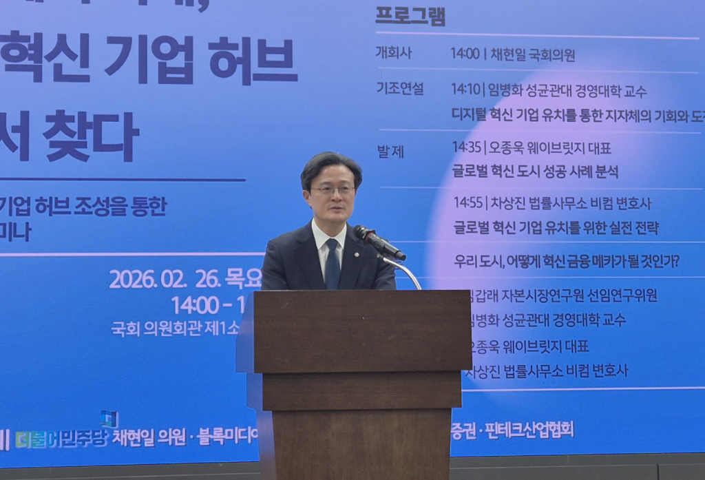 [블록미디어 오수환 기자] 채현일 더불어민주당 의원(영등포 갑)이 영등포를 글로벌 디지털 혁신 허브로 육성하겠다는 의지를 밝혔다. 채현일 의원은 26일 서울 여의도 국회 의원회관에서 열린 ‘지역 경제의 미래, 디지털 혁신 기업 허브 도시에서 찾다’ 세미나 환영사에서 “세계 금융은 인공지능(AI)과 블록체인이 주도하는 인프라 중심으로 산업의 근간이 재편되고 있다”며 “글로벌 혁신 도시들은 이미 전략적으로 미래를 선점하고 있다”고 말했다. 이날 […]