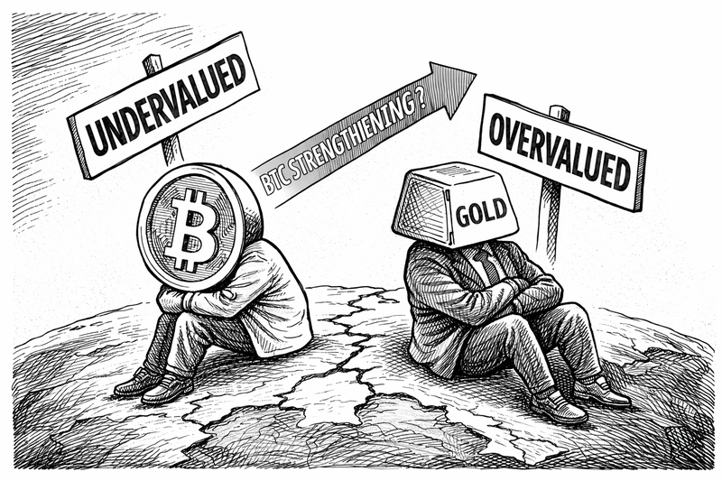 최근 비트코인(BTC) 가격은 금 시세 대비 가장 저평가된 상태로 나타났으며, 과거 패턴을 감안할 때 2026년 비트코인 가격은 강세일 가능성이 높다고 코인텔레그래프가 분석했다. 코인텔레그래프는 “2022년 말 비트코인 가격이 금 대비 저평가되는 시그널이 나타난 후 BTC 가격은 거의 150% 급등했다. 이는 극심한 금 대비 저평가가 주요 상승장의 전조 신호로 해석될 수 있음을 시사한다. 최근 BTC 와 금 가격을 비교한 Z-스코어(평균값과 얼마나 떨어져 있는지를 표준편차 단위로 나타낸 지표)는 -2 미만을 기록하고 있다. 이는 비트코인 가격의 금 시세 대비 표준편차가 장기 평균보다 상당히 낮은 수준이며, 과거 Z-스코어가 -2 수준에 가까워졌을 때 반등이 시작되는 경우가 많았다. 따라서 BTC 가격 상승률이 향후 몇 달 동안 금 가격 상승률을 상회할 가능성이 존재한다”고 설명했다.