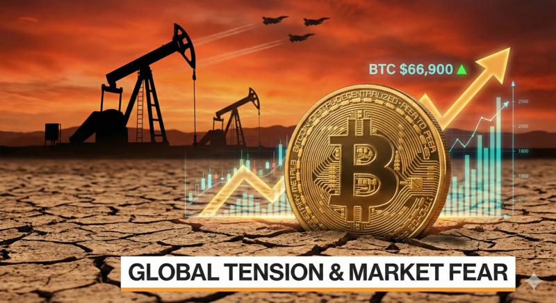 중동 전운에 널뛰는 유가… 극도의 공포 속 비트코인은 6만 6,900달러 선 방어/제미나이 생성 이미지