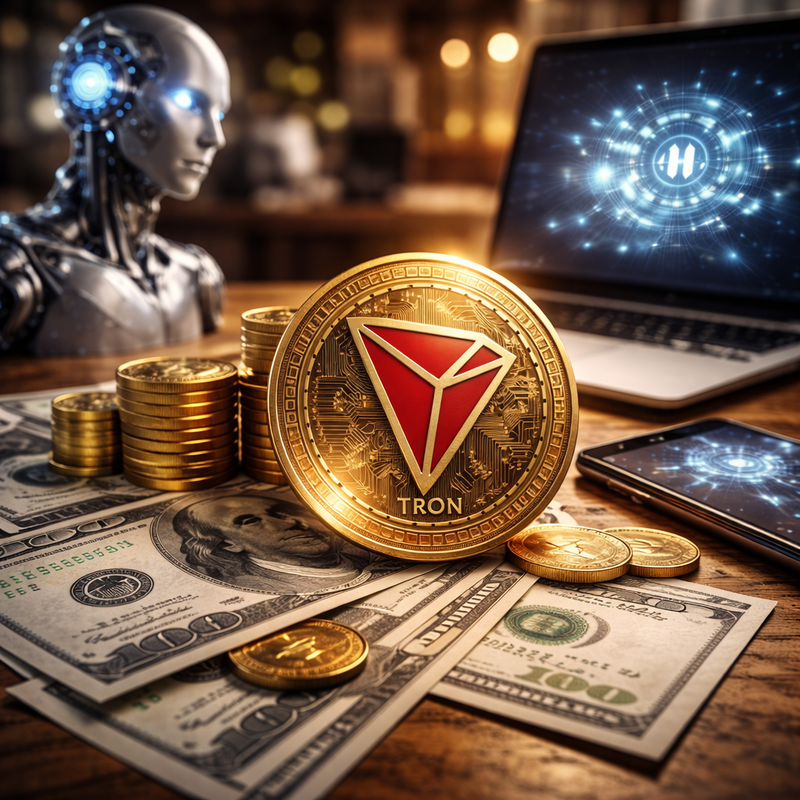 ![]() ▲ 트론(TRX), 달러(USD), 인공지능(AI)/AI 생성 이미지 |