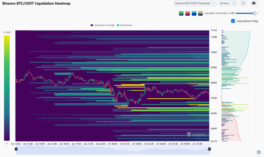 [파생시황] 비트코인 6만7000달러선 ‘안간힘’… 숏 청산 매물, 반등 스모킹건 될까