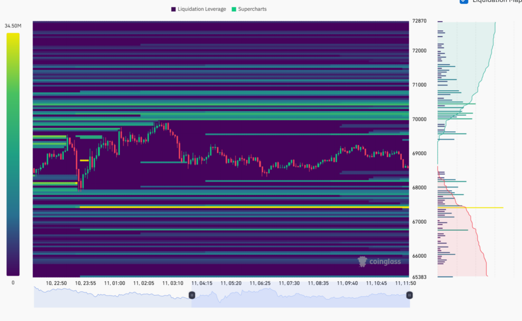 [파생시황] 6만9000달러 돌파냐, 6만7000달러 붕괴냐…청산 대기물량 ‘양방향 폭탄’
