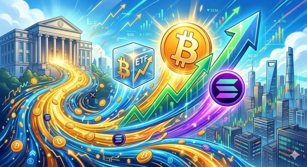 [펀드플로] 기관 자금 ‘리스크온’ 전환… BTC·ETF·SOL 동반 순유입 성공