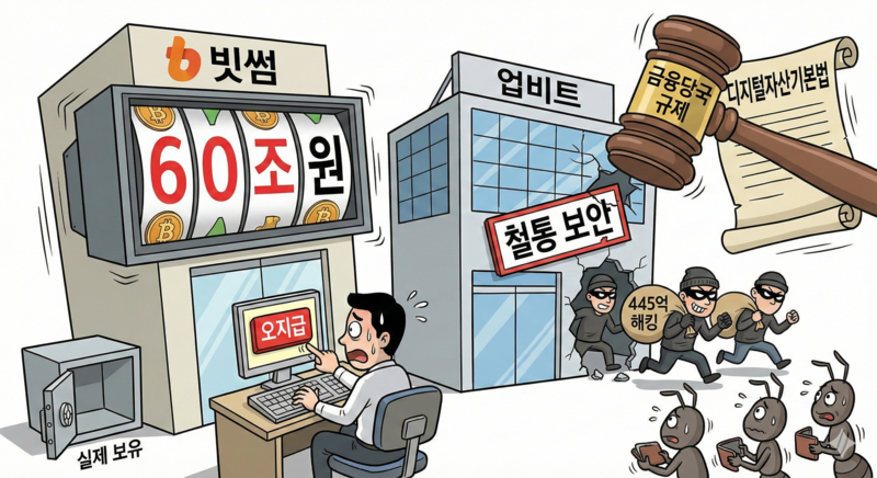 Bithumb and Upbit, which dominate South Korea’s digital asset market, have triggered consecutive mega-scale incidents, driving investor trust to the ground. The ’60 trillion won ghost Bitcoin’ incident and the ‘44.5 billion won hacking’ case went beyond simple mistakes, starkly exposing the lax internal controls and security systems of domestic exchanges. Unfolding ahead of the enactment of the Framework Act on Digital Assets, these 악재 pour cold water on the institutional settlement of the ‘K-coin market.’