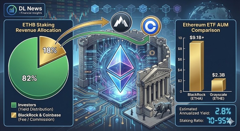 According to DL News on Feb. 18 (local time), BlackRock stated in a filing submitted Tuesday to the U.S. Securities and Exchange Commission (SEC) that it intends to distribute 82% of staking rewards from its upcoming Ethereum exchange-traded fund (ETF), ETHB, to investors, while the remaining 18% will be shared by BlackRock and the fund’s primary execution agent, Coinbase. This structure is expected to serve as a strong financial incentive for the issuer to maximize the amount of Ethereum deposited within the trust.