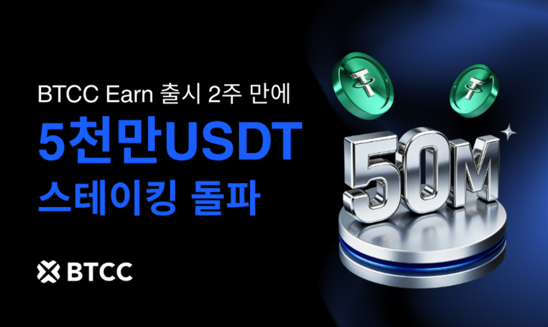 BTCC Earn, 출시 2주 만에 스테이킹 5,000만USDT 돌파