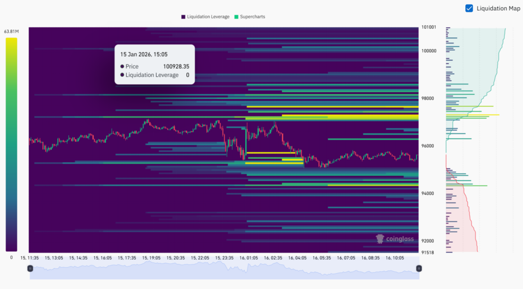 [파생시황] 비트코인 9만5000달러 공방…청산맵이 가리키는 방향 ‘위보다 아래’