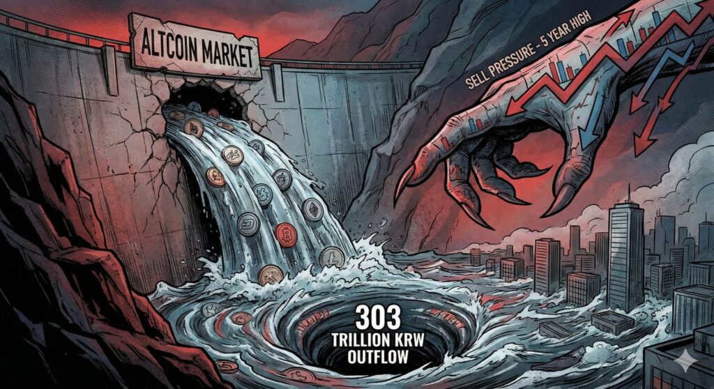 알트코인 매도 압력, 5년 만 최고치 기록… 1년 새 ‘누적 303조원’ 순유출