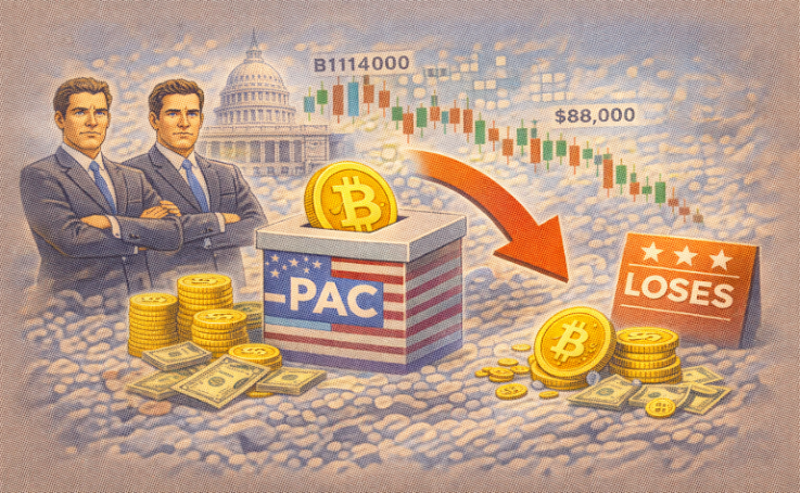 [블록미디어 문예윤 기자] 카메론·타일러 윙클보스 형제가 후원하는 정치자금 모금 단체가 디지털자산(가상자산) 시장 약세의 직격탄을 맞았다. 디지털자산으로 기부금을 받은 정치자금이 시장 조정 국면에서 수백만달러 규모의 손실로 이어진 것이다. 30일(현지시각) 연방선거위원회(FEC) 제출 자료에 따르면 윙클보스 형제가 후원하는 슈퍼 PAC ‘디지털 프리덤 펀드(Digital Freedom Fund)’는 지난해 2200만달러(약 319억원) 이상을 모금했다. 이 가운데 상당 부분이 비트코인 형태로 유입됐다. 윙클보스 […]