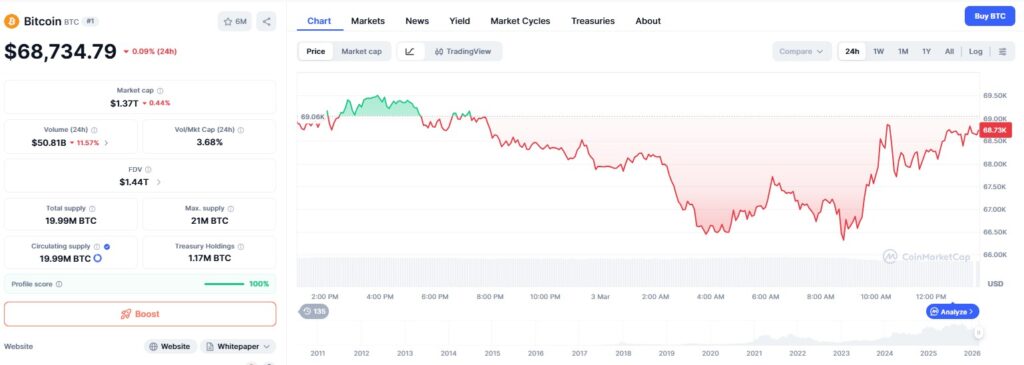 ▲ 비트코인(BTC) 비트코인(Bitcoin, BTC)이 전 고점 탈환을 위한 중대한 갈림길에 선 가운데 7만 1,000달러라는 강력한 심리적 저항선을 돌파하느냐가 향후 상승장 지속 여부를 가를 핵심 변수로 떠올랐다. 3월 3일(현지시간) 암호화폐 전문 매체 유투데이에 따르면, 가상자산 분석가들은 비트코인이 최근 7만 1,000달러 부근에서 수차례 거절당하며 단기적인 천장을 형성하고 있다고 진단했다. 기술적 분석가인 알리 마르티네즈(Ali Martinez)는 […]