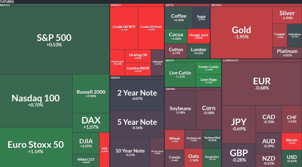 [이 시각 글로벌 선물] 천연가스 25% 폭락·비트코인 7% 급락…美·유럽 지수 선물은 강세