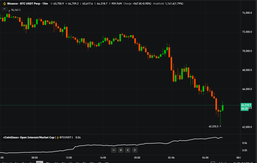 [블록미디어 이정화 기자] 비트코인 가격이 6만2000달러 초반까지 급락한 뒤 단기 반등에 나서면서 시장에서는 바닥 통과 여부를 둘러싼 논쟁이 확산되고 있다. 급락 직후 저가 매수와 숏커버링이 유입되며 반등이 나타났지만 파생시장 지표를 감안하면 추세 전환으로 단정하기에는 아직 이르다는 평가가 우세하다. 5일(현지시각) 코인글래스 차트에 따르면 바이낸스 비트코인 무기한 선물 기준 비트코인은 장중 6만2333달러까지 밀리며 단기 저점을 낮춘 뒤 […]