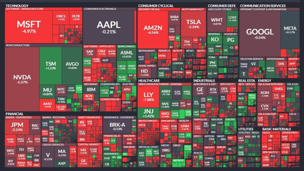 [멕시코=심영재 특파원] 뉴욕증시가 5일(현지시각) 또다시 일제히 하락했다. 투자자들이 위험 회피 성향을 강화하면서 기술주와 디지털자산(가상자산) 관련 종목들이 매도세에 직면했고, 이에 따라 주요 지수는 3거래일 연속 하락했다. 특히 S&P500 지수는 연초 대비 수익률이 마이너스로 돌아섰다. 다우존스산업평균지수는 전장 대비 592.58포인트(1.20%) 하락한 4만8908.7에 마감했으며, 장중 한때 700포인트 가까이 밀렸다. 나스닥종합지수는 363.99포인트(1.59%) 내린 2만2540.6을 기록했고, S&P500 지수는 84.32포인트(1.23%) 하락한 6798.40으로 […]