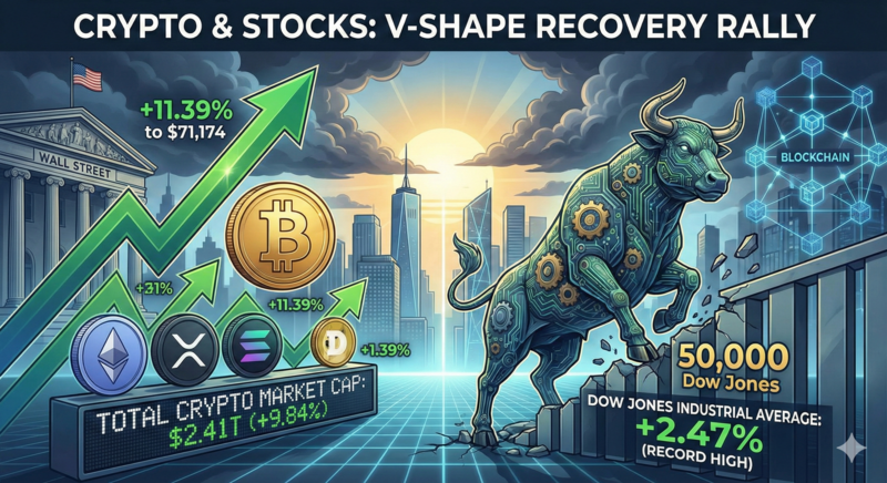 On the morning of the 7th (Korean time), the cryptocurrency market turned broadly higher, driven by Bitcoin’s sharp rebound. As bargain-hunting demand flowed in after the shock of the recent crash, vitality has returned to the overall market. The New York stock market also showed a powerful rebound, with the Dow Jones Industrial Average surpassing the 50,000 mark for the first time in history, leading a recovery in investor sentiment.